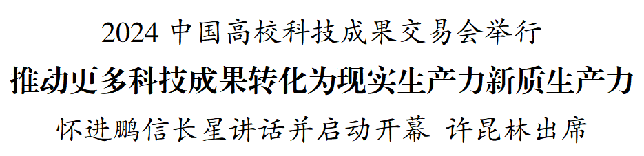 怀进鹏指出,习近平总书记在党的二十届三中全会和全国教育大会上,都对高校科技成果转化提出专门要求。教育部把提高高校科技成果转化效能作为推进教育强国建设的重大改革任务,围绕高校科技创新和产业创新在“新”和“质”上下功夫,加快以高校科技之“新”孕育产业之新、以高校人才之“智”提升产业之质,为新质生产力发展贡献高校力量。当今世界新一轮科技革命和产业变革加速演进,我国高校在科技成果转化实践中,形成了以校企双向奔赴为最大效率、以师生携手共创为最大特色、以政产学研金协同为最大保障的独特经验。希望本届交易会以科技成果转化为纽带,链接各方资源,搭建产教深度融合、校企精准对接的桥梁,促进科技链、产业链、金融链和人才链有效融合,努力办成高校科技成果转化的“金字招牌、金色平台、金光大道”,为发展新质生产力、推进中国式现代化贡献新的更大智慧和效能。